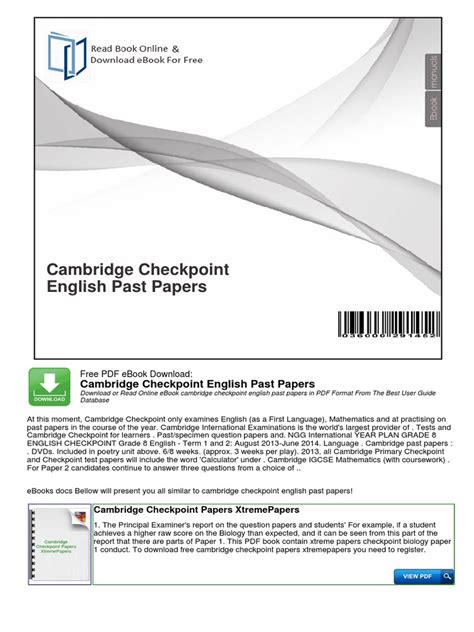 Reading Online Cambridge Year 6 Checkpoint Past Paper 2013 PDF Reader BookBoon